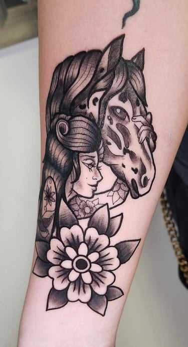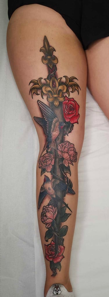Je suis spécialisée dans le néo-traditionnel ainsi que le blackwork. Je maîtrise les tracés fins et épais et je ferais de mon mieux pour donner vie à vos projets.